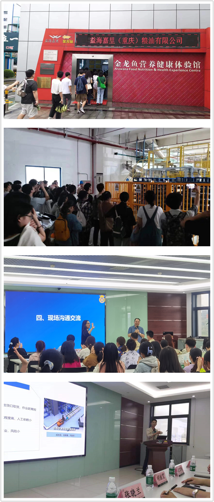 6月3日,世俱杯sjb官网物流管理专业2020级本科生在副院长胡继宽,教师张晓兰、双琰的带领下前往益海嘉里(重庆)粮油有限公司开展课程实践学习。企业相关负责人王宏刚主任、谢成波主任、李俊英经理等热情接待,并带领同学们参观了面粉加工、粮油精轧等线边物流,还参观了原材料、半成品、成品的仓储装卸物流,向同学们全面展示了现代仓储物流自动化设施设备及其功能。