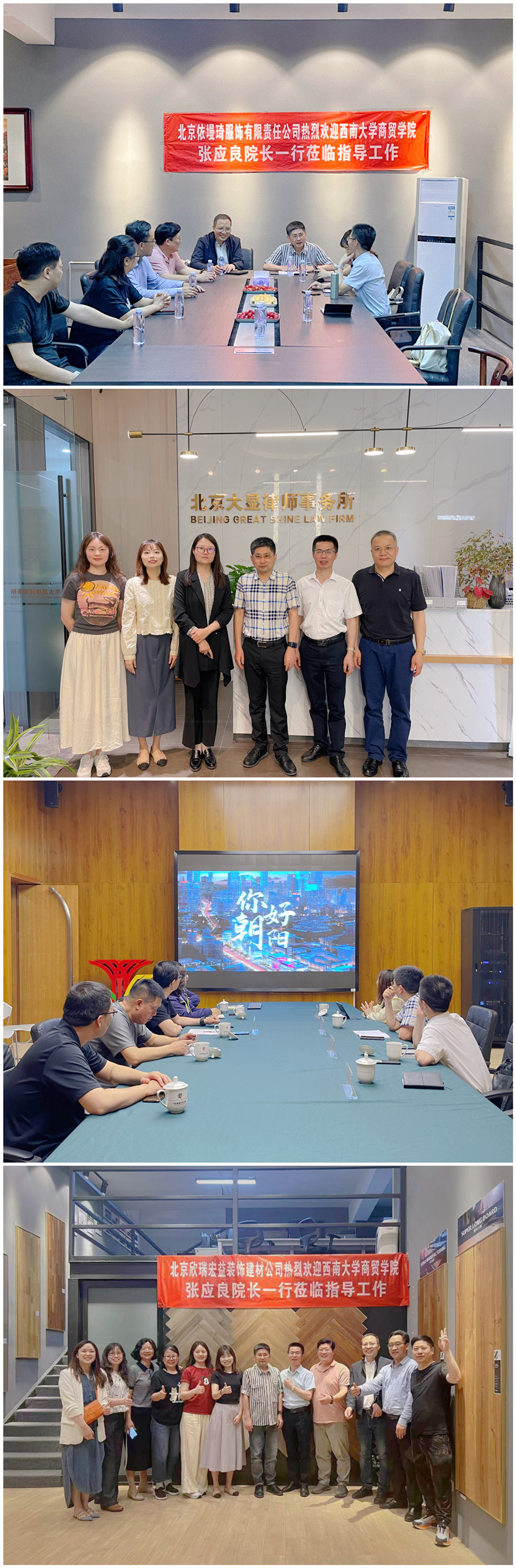 张应良院长一行受到在京校友的热烈欢迎,先后走访了北京欣瑞宏益装饰建材公司、北京依墁琦服饰有限责任公司、北京大显律师事务所、北京恒信国际旅行社有限公司、北京百年光合生态科技有限公司等校友创办企业和北京世奥森林公园开发经营有限公司、兴业银行北京分行海淀中心支行等校友供职企业,深入了解在京校友事业发展情况,寻求校友企业对推进学生就业工作的支持,听取校友对学生人才培养方面的意见建议。
