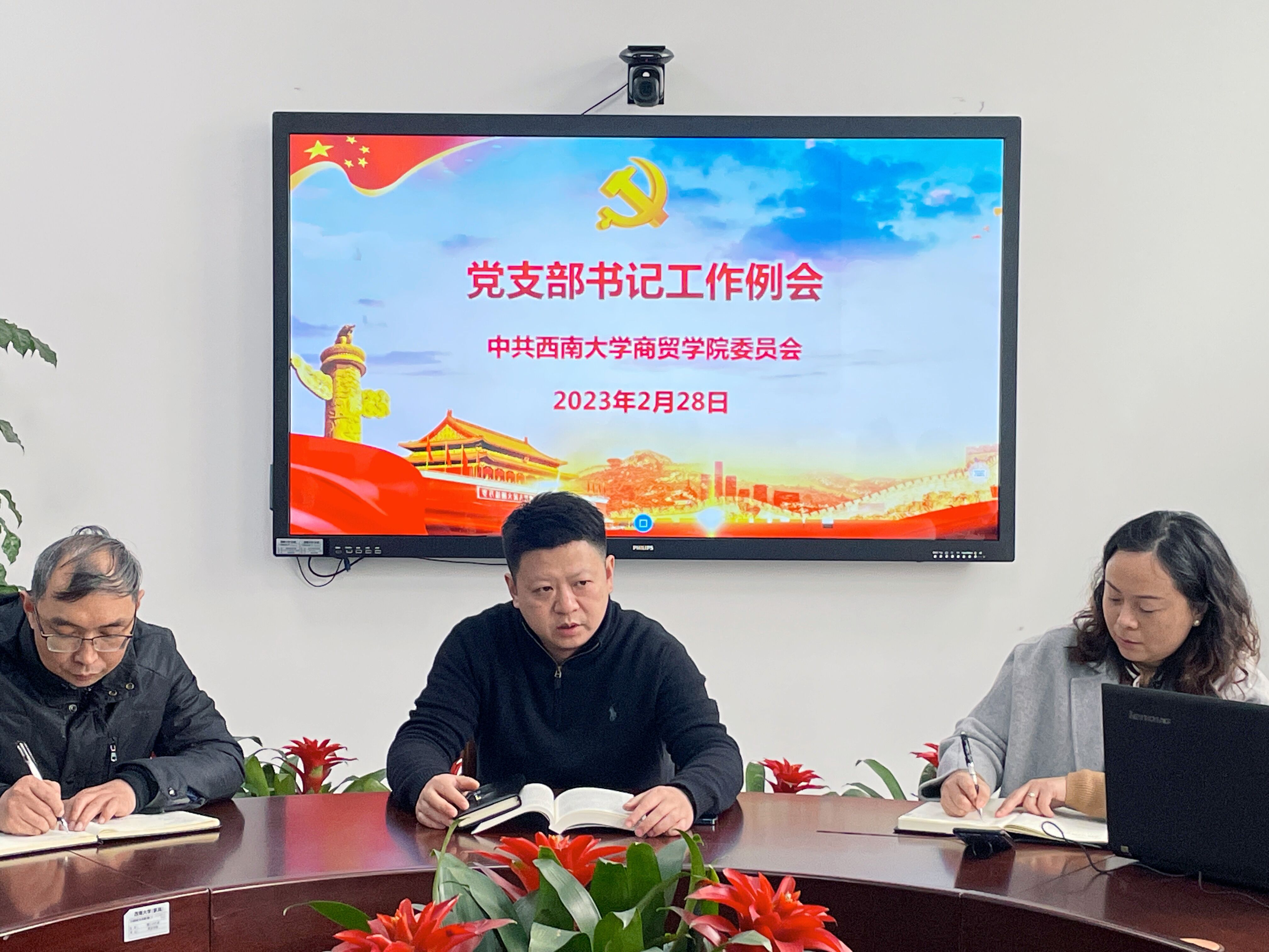 2月28日,世俱杯sjb官网党委召开2023年春季学期首次党支部书记工作例会。学院党委书记王熹,党委副书记、纪委书记兰英及教工支部、学生支部全体支部书记参会。会议由王熹主持。