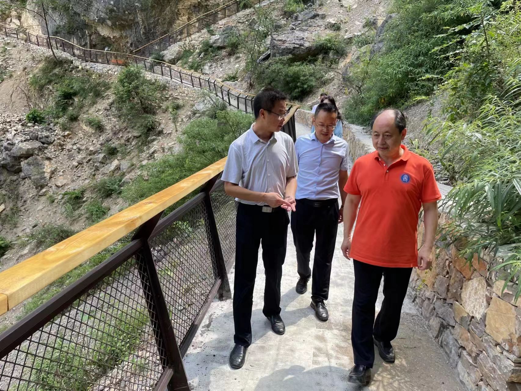 在巫山县乡村振兴局负责人的带领下,实践团一路实地体验走访了下庄“天路”。沿着“天路”来到下庄村党员教育培训基地和下庄人事迹陈列室,学习了解时任村支书毛相林带领村民向绝壁挑战,历时7年在悬崖上凿出一条“天路”的感人事迹。“天路”成为了“天坑村”下庄的脱贫路、致富路和振兴路。实践团还在现场观看了纪录片。“山凿一尺宽一尺,路修一丈长一丈……”,实践团成员深感震撼,为“当代愚公”绝壁开道、向天要路的事迹深深动容。