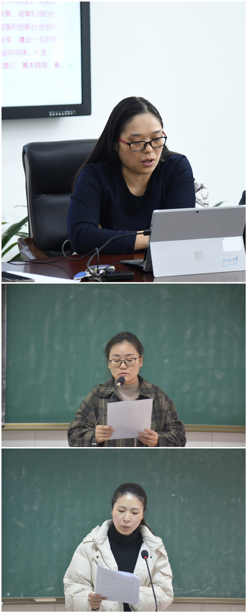 以上活动结束后,教工第一党支部书记张晓兰、学生第四党支部书记邓婷婷、学生第五党支部书记刘莉莉、学生第六党支部书记李雅丽为本支部全体党员同志讲授了学习贯彻习近平总书记“七一”重要讲话精神专题党课。