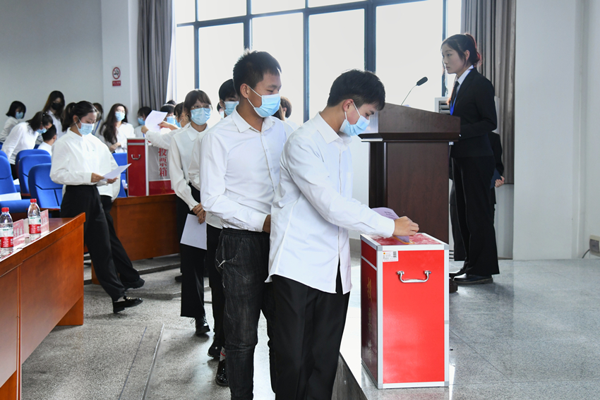 开幕式结束后,大会审议并通过了《世俱杯sjb官网学生会章程》《世俱杯sjb官网学生会主席团成员选举办法》以及监票员、计票员名单。大会在总监票人的主持下,通过无记名投票选举的方式,公开、公平、公正地选举产生了第五届学生会主席团成员,成员包含李婷婷、杨青宇、李博雅等三名学生。