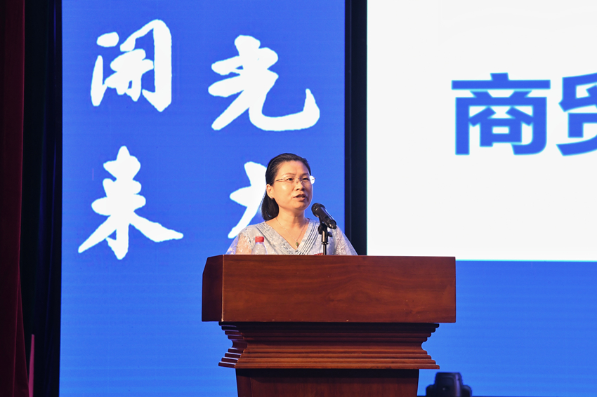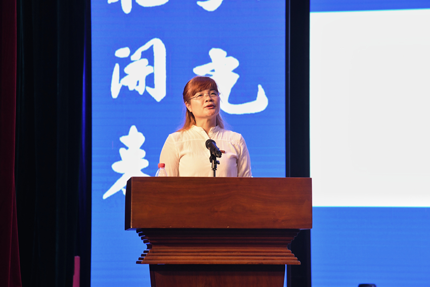 随后,教师代表陈小娟发言。陈老师谆谆嘱托同学们一定去图书馆、一定要锻炼身体、一定要避免沉溺网络与游戏,学会学习、学会做事、学会做人。