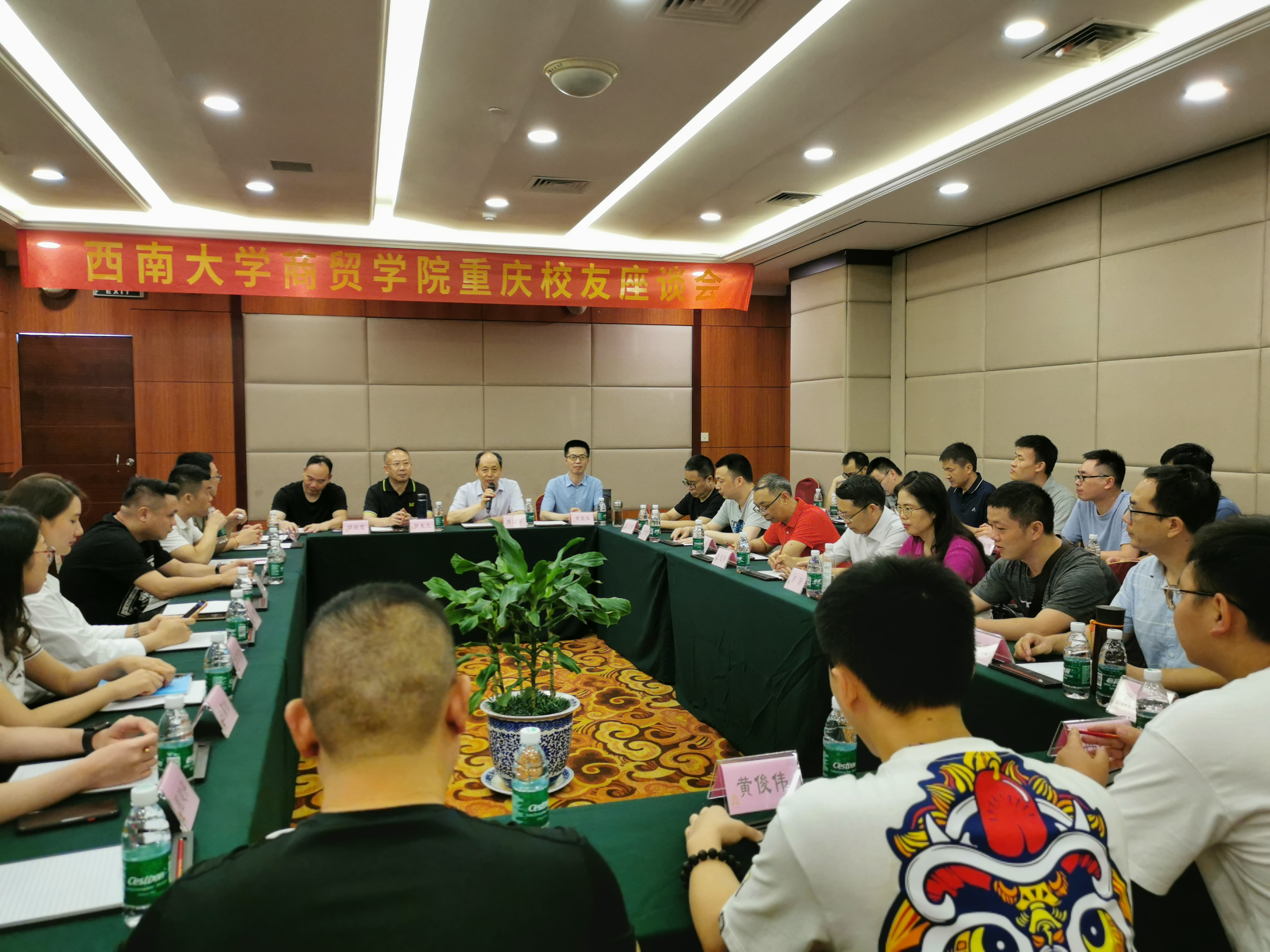 7月18日,世俱杯sjb官网组织的2021年教职工三下乡服务队在重庆召开校友座谈会。学院党委书记周国安,副院长罗先文、胡继宽等党政领导、服务队全体教职工与十余名在渝校友共聚一堂,共同交流。