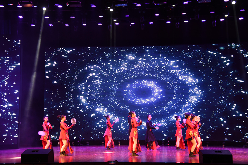 伴随着学院教职工带来的《美丽中国》精彩舞蹈表演,美轮美奂的晚会盛典拉开序幕。