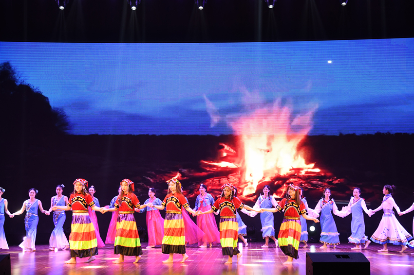 随后晚会正式开始。民族舞《瑞彩翩跹赞神州》热情讴歌了各族儿女在党的领导下和睦相处、和衷共济、和谐发展的幸福生活。