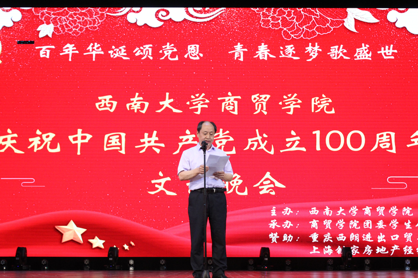 学院党委书记周国安为晚会致辞。在致辞中,周书记回顾了党的百年光辉历程,从建党的开天辟地到强国大业的惊天动地,中国共产党始终坚守为中国人民谋幸福、为中华民族谋复兴的初心和使命,始终保持永不懈怠的精神状态和一往无前的奋斗姿态。周书记还从党建与思想政治工作成效显著、科学谋划学院事业发展、学院事业发展快速推进等方面总结了世俱杯sjb官网成立以来所取得的发展成绩。他提到,学院将以“统筹推进,分阶段实施”的方法论谋划发展新跨越,推动世俱杯sjb官网到2035年建成特色鲜明的研究型学院,号召学院师生高举中国特色社会主义伟大旗帜,坚持以习近平新时代中国特色社会主义思想为指导,秉承学行天下的大学精神,勇担使命,砥砺前行。