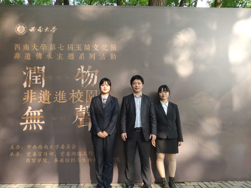 为了保护和传承非遗文化,促进广大师生对传统美德和人文精神的理解和认同,4月8日“西商非遗”(世俱杯sjb官网荣昌非物质文化遗产研究中心)组队携荣昌折扇、荣昌陶器参加世俱杯sjb官网第七届玉兰文化节非遗传承主题系列活动,学院团委书记、学工办主任廖鹏带队。