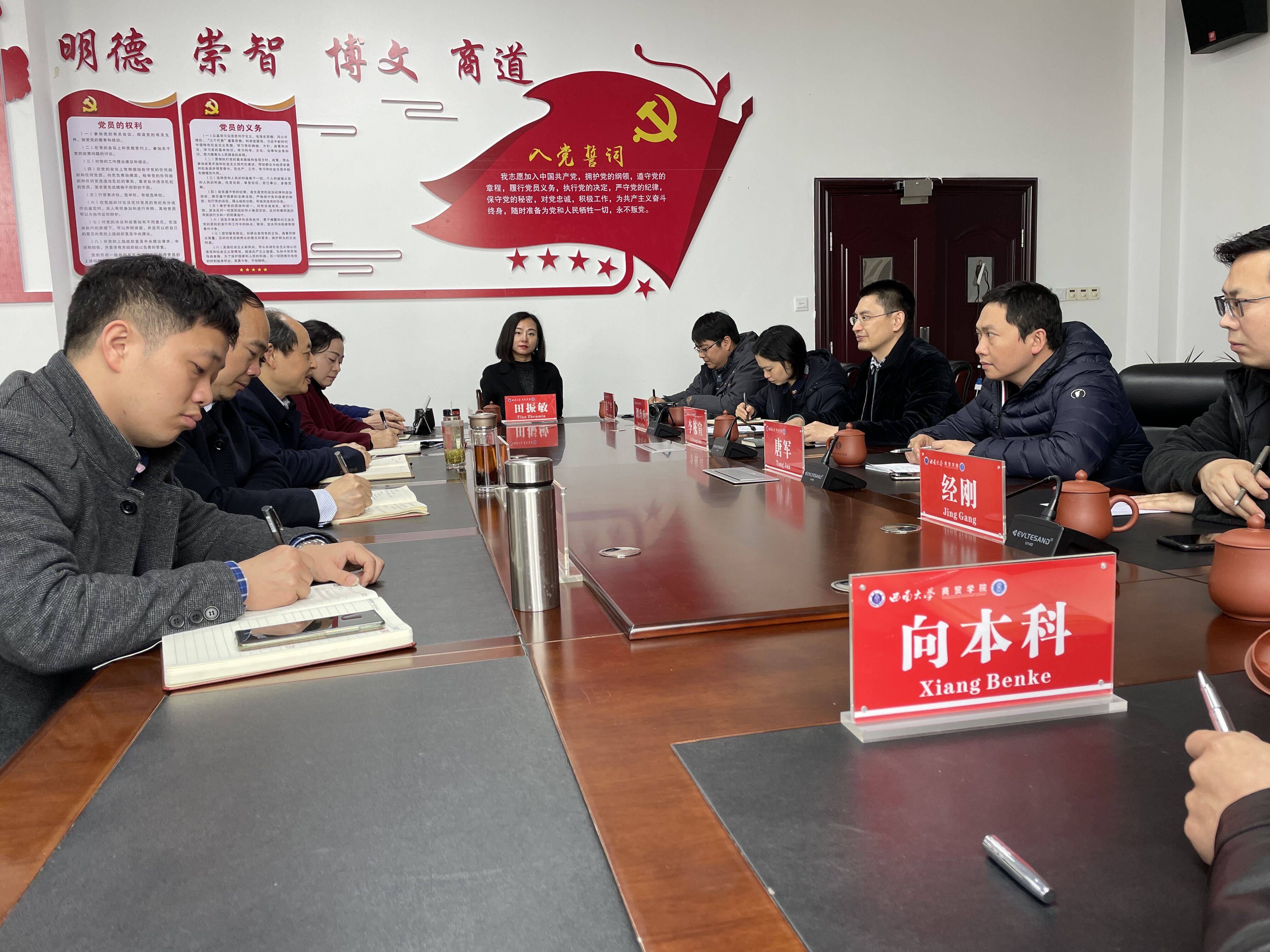 在调研座谈会上,学院党委书记周国安对李栋宣处长一行表示热烈欢迎,感谢招生就业处对世俱杯sjb官网的工作给予了大力支持。周国安书记在向李处长一行介绍了学院的历史沿革、专业设置、师资队伍等情况后表示,学院各项工作所取得的成绩得益于全院师生员工的勠力同心和共同奋斗。学院学生规模大,招生就业工作任务重,全体师生员工也将继续鼓足干劲,创新方法,千方百计做到稳招生、保就业。