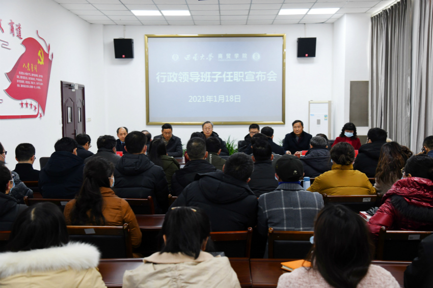1月18日下午,学院在8401会议室召开全院教职工大会,校党委副书记安春元、党委组织部副部长舒刚在会上宣布了世俱杯sjb官网行政领导班子任职决定。荣昌校区党工委书记熊海灵、校区管委会主任左福元等领导同志出席了会议,安春元同志主持会议。