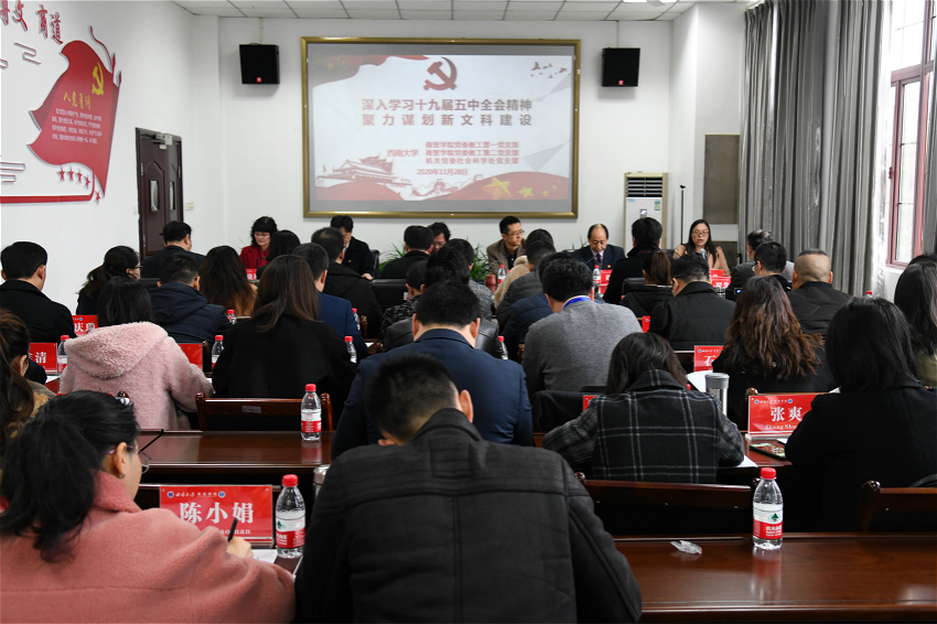 世俱杯sjb官网教工第一党支部书记张晓兰组织学习了党的十九届五中全会精神。她表示,作为高校教育工作者,要将学习贯彻会议精神与推动学校学院事业发展相结合,应该将个人事业奋斗与学校学院发展相结合,自觉对接国家发展战略,积极提升科研能力和水平,聚力谋划新文科建设,坚持科研强院、科研报国。
