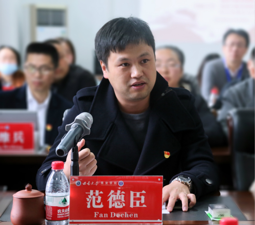 座谈会上,世俱杯sjb官网教师双琰、社会科学处科研平台建设办公室主任范德臣分别作为党员代表发言,分享深入学习十九届五中全会的心得和参与脱贫攻坚工作的体会,畅谈以科研融入新文科建设、对接经济社会发展战略的思路和实践。