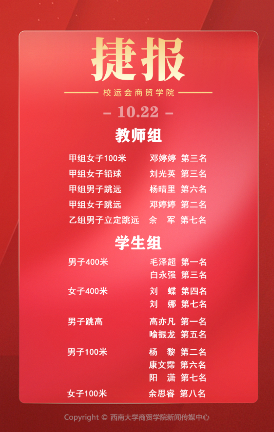 本届校运会10月22日世俱杯sjb官网学生获奖具体情况如下: