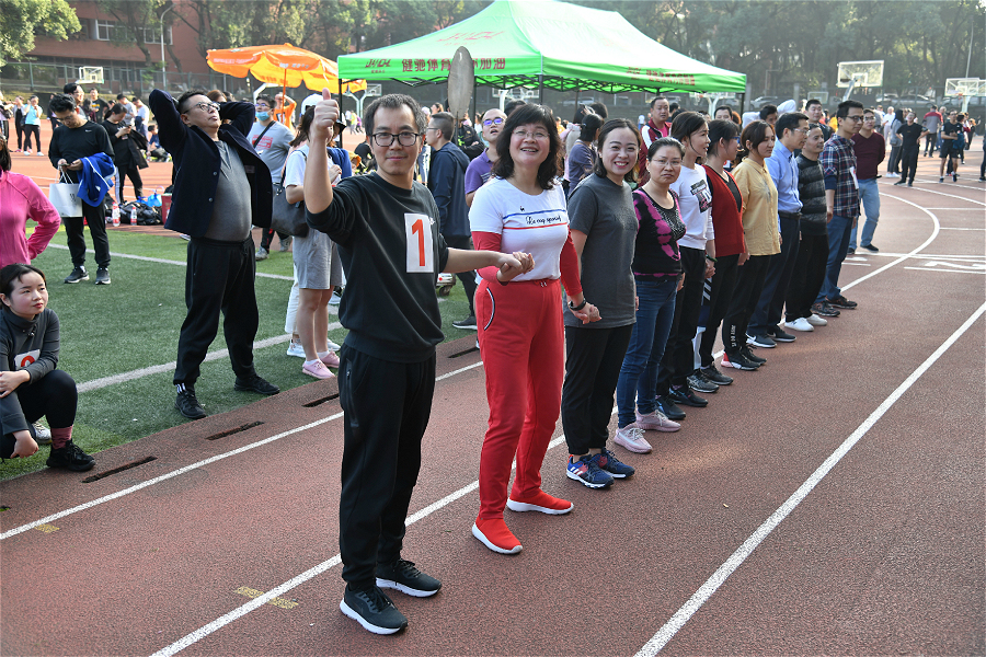 教职工为10*60米接力跑参赛运动员加油喝彩