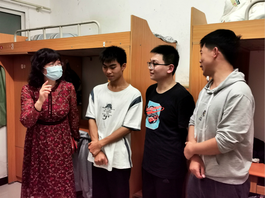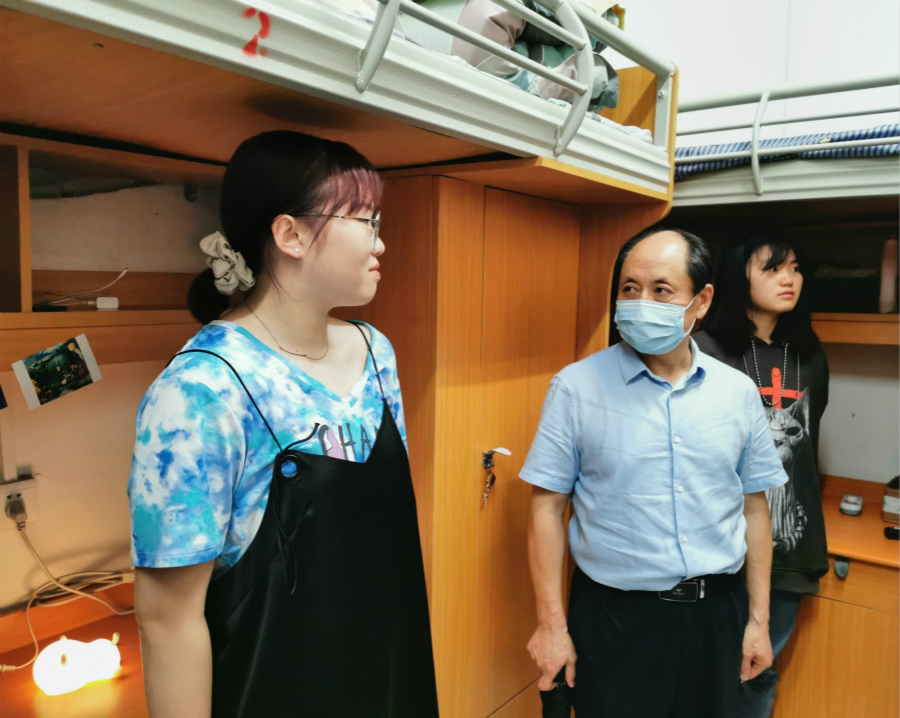 9月20日晚间,学院党委书记周国安,副院长(主持工作)李晓阳,党委副书记、纪委书记兰英一行走访学生寝室,慰问看望2020级新生。