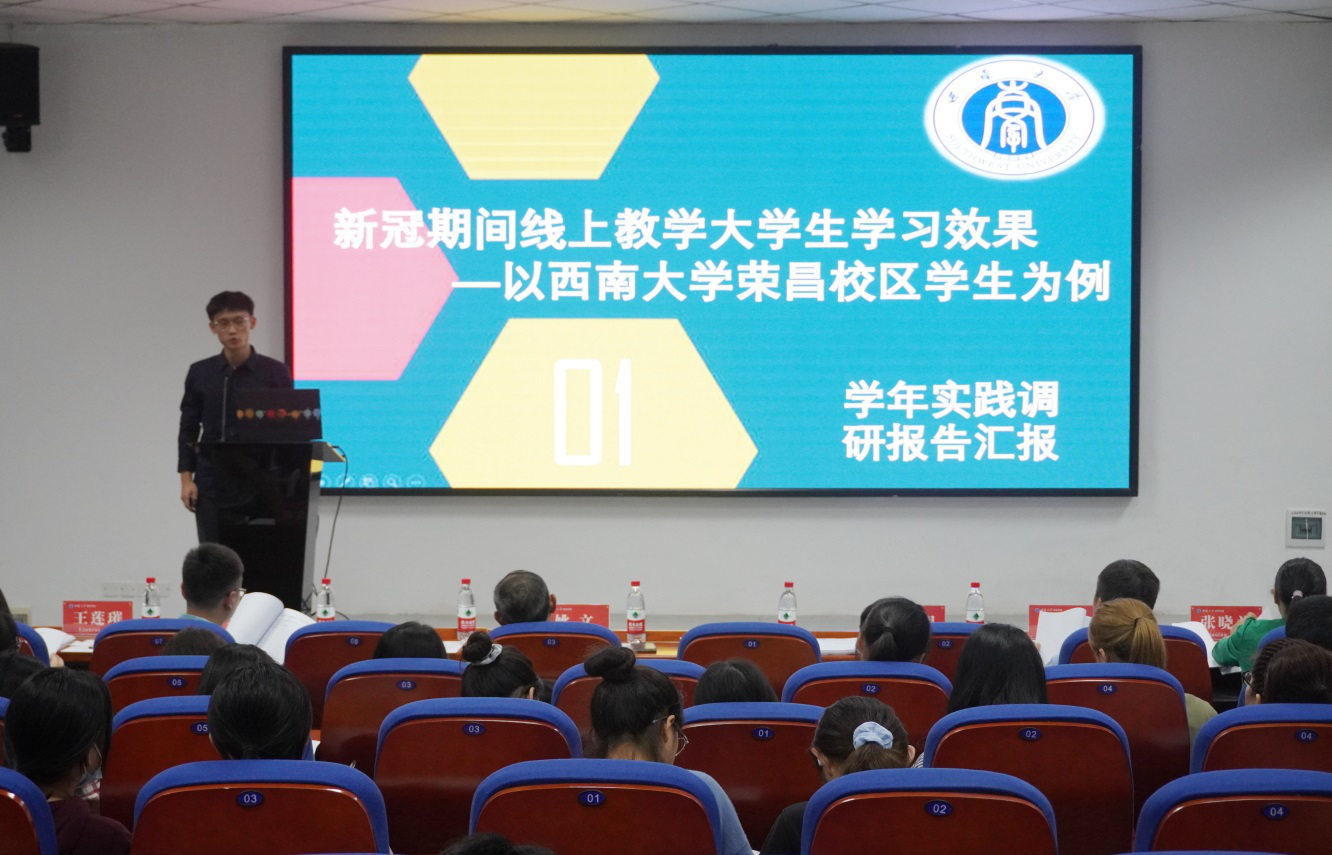 学年实践是促进学生将所学理论知识融会贯通于社会实践,巩固理论基础提升操作技能的重要教育教学改革举措。2019级市场营销类共10个班,学生组建成39个实践团队,于2020年6月15日开始,进行了为期一周的以“新冠肺炎疫情对大学生的学习、生活的冲击,线上教学对大学生学习的影响”等为主题的学年实践(一)活动,并总结形成了实践报告。经过15名指导教师匿名评审,从39个团队中评选出10个优秀团队参加总结汇报比赛。在比赛现场,参赛团队向公共事业管理系、市场营销系200多名学生分享了他们参加学年实践活动的深刻体验。