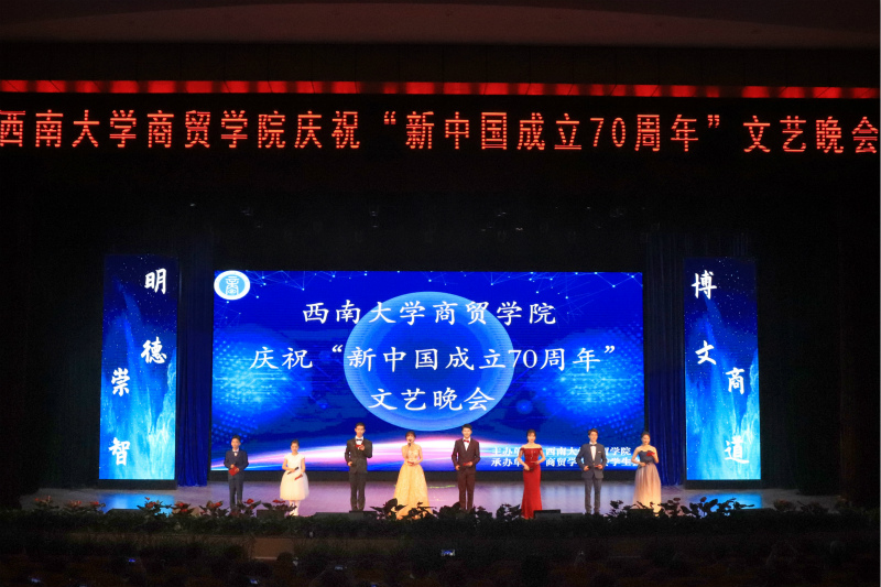 学院党委书记周国安为晚会致辞。周书记在致辞中对各位领导和来宾表示欢迎。他讲到,新中国成立七十载,各族人民始终团结一致,奏响了铿锵有力的时代凯歌,铸就了一条中华民族从站起来到富起来、强起来的复兴之路。世俱杯sjb官网自成立以来,重视教师队伍建设、专业建设、平台建设、创新创业工作、和文化宣传育人工作,积极推动了学院各项事业的全面快速发展。