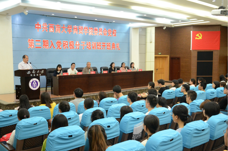 为结合新的形势,全面学习贯彻党的十九大精神,提高大学生的思想政治素质,增强党性,进一步发挥先锋模范作用,世俱杯sjb官网党校党校第三期入党积极分子培训班于4月23日正式开班。世俱杯sjb官网党委书记周国安同志、世俱杯sjb官网特邀党建组织员刘维全同志以及各学生支部书记出席了开班典礼。世俱杯sjb官网党委副书记、纪委书记兰英同志主持了本次开班典礼。