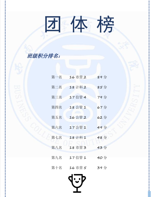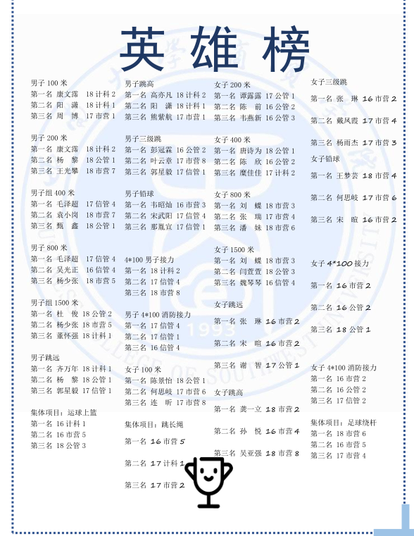 第二届“青春杯”田径运动会英雄榜