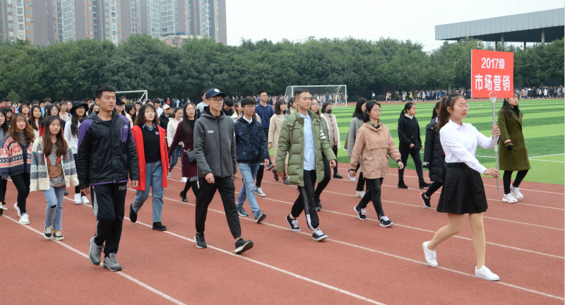 开幕式上首先进行的是精彩的入场式,运动员代表方阵以整齐划一的步伐和挺立的身姿展现了商贸学子的青春朝气。