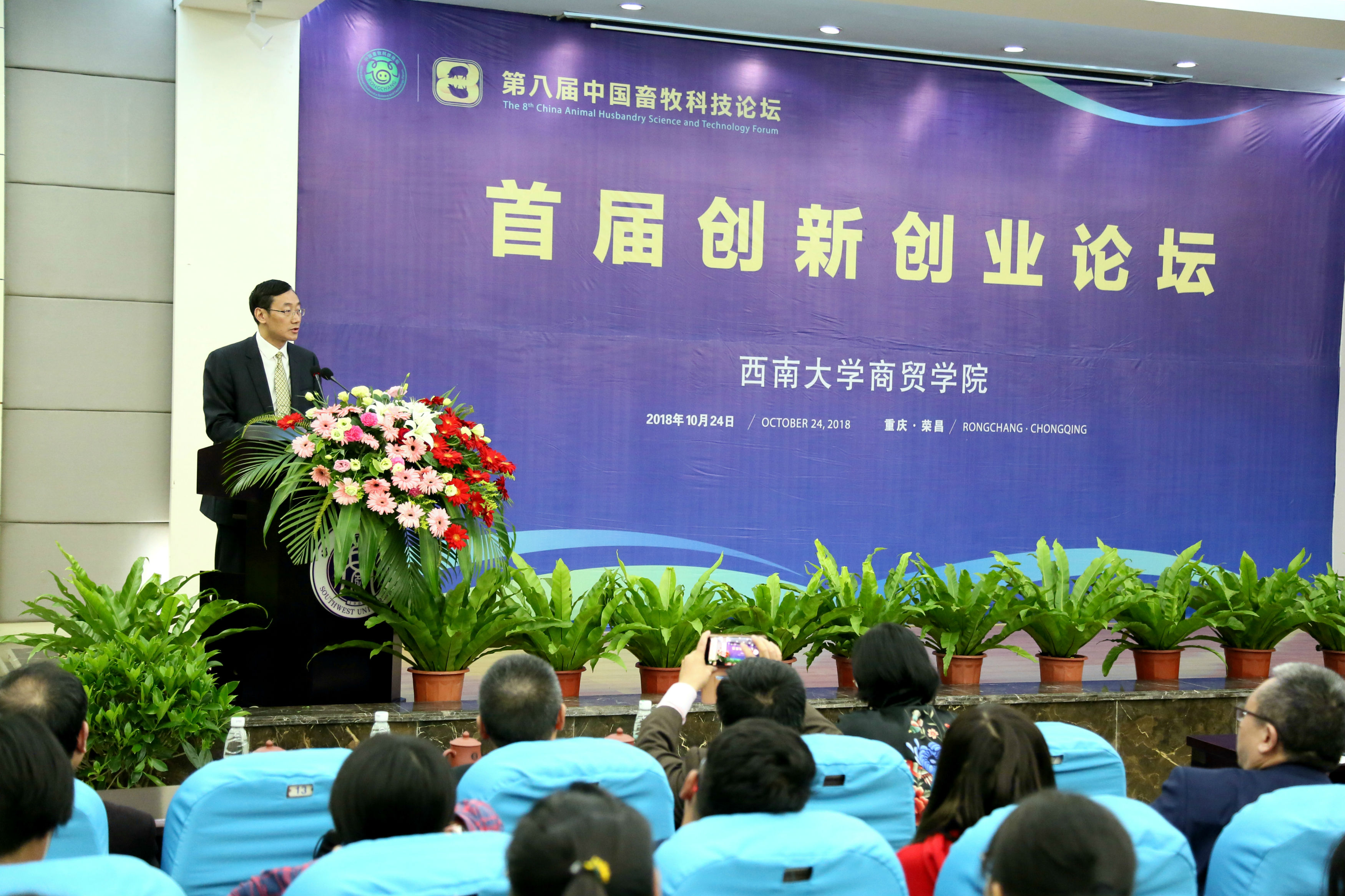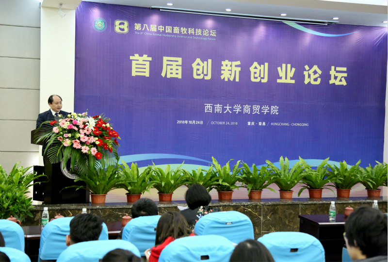 濑溪河畔金桂树,十月花开不待春。10月24日下午,第八届中国畜牧科技论坛之首届“创新创业论坛”在我院举行。本次论坛以“创新创业谋发展,青春建功新时代”为主题,是我院五大人才培养计划之“商道双创”计划的重要支撑内容。荣昌区委常委、副区长周维颖,市科委主任助理张永涛,市就业局原副局长高鹏翔,阿里云计算有限公司阿里云大学总经理王晓斐,软通动力信息技术(集团)有限公司高级副总裁黄岩,中国科学院国家遥感应用工程技术研究中心智慧城市课题组组长张会娟,途牛北京恒信国际旅行社有限公司总经理张丽,重庆宗申产业集团有限公司首席信息官吴强,顺丰科技有限公司数据运营与分析工程师窦一峰等校外领导、专家、嘉宾及优秀校友应邀参加,校党委常委、副校长王永才以及荣昌校区党工委、管委会,动物科学学院,基础部领导出席了论坛。熊海灵副院长主持论坛。