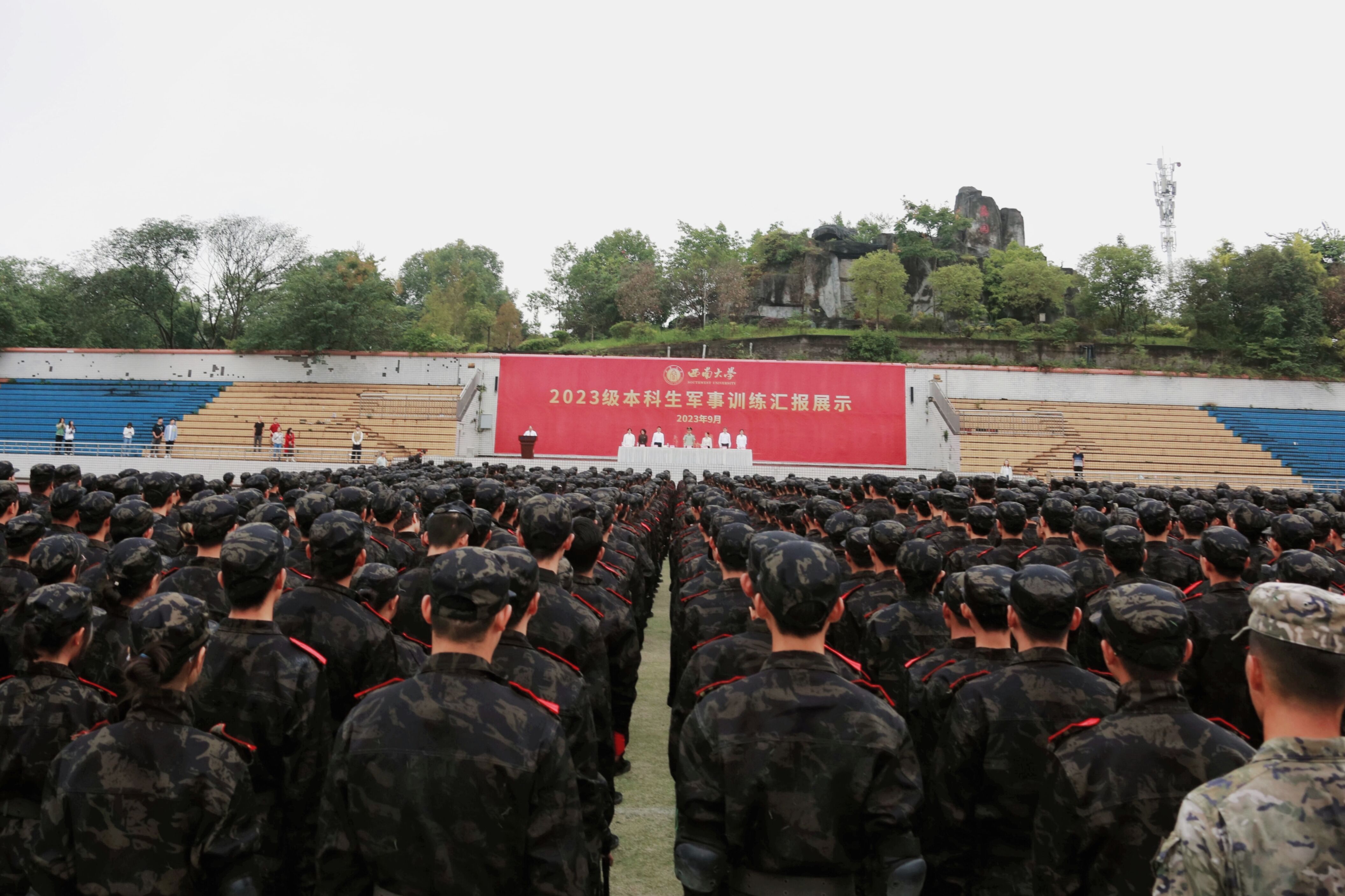 9月25日上午,世俱杯sjb官网全体本科新生参加学校2023级本科生军事训练汇报展示,圆满完成新生集中军事训练任务。