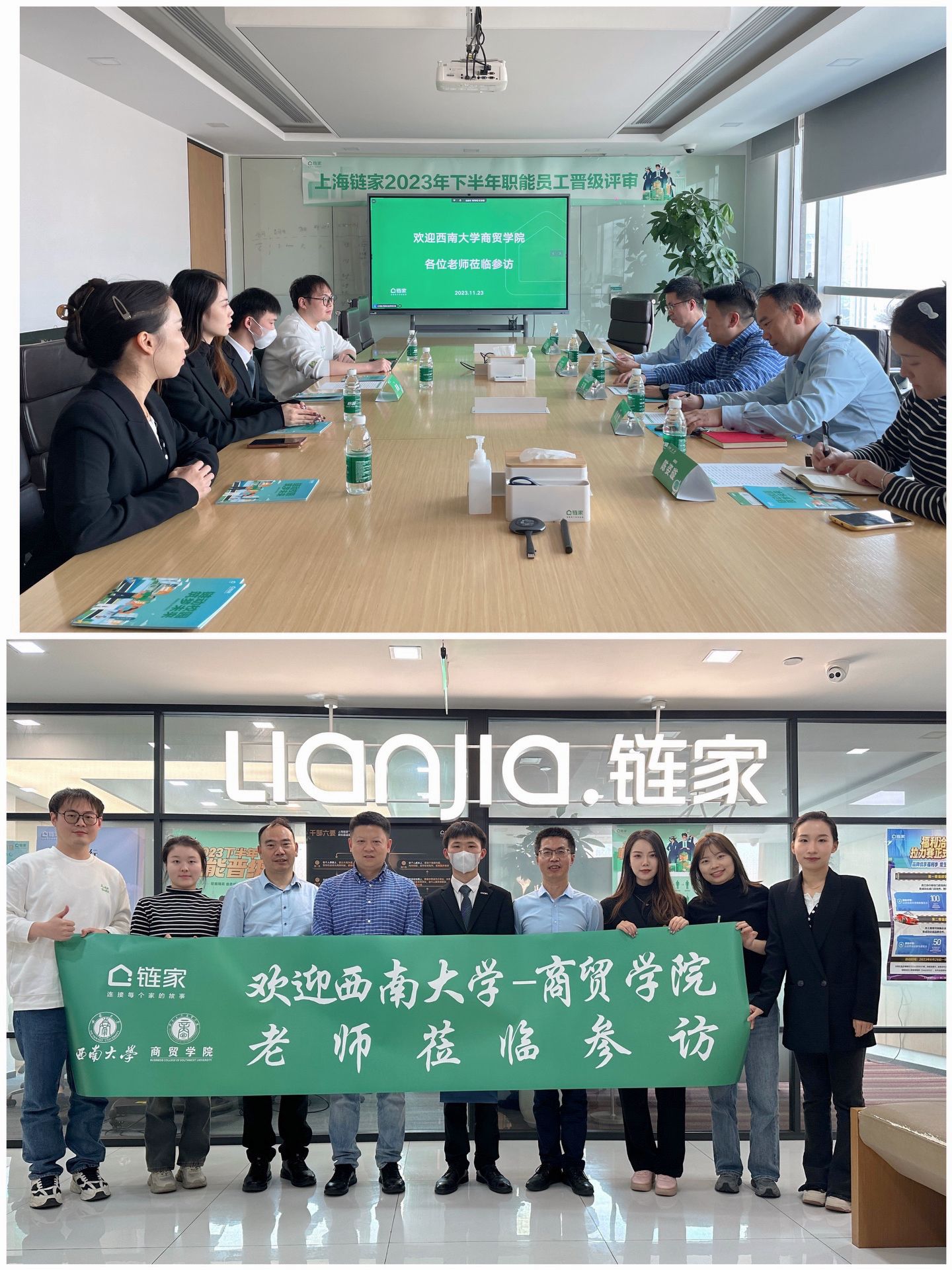 在上海链家房地产经纪有限公司进行座谈时,企业人力资源部门负责人向访问团介绍了以“领航家”项目为重点的校园招聘人才战略,对学院长期以来为企业输送优质毕业生人才表示衷心感谢。企业在职的2019级校友张鑫向访问团汇报了个人职业发展情况。王熹表示,世俱杯sjb官网与上海链家具有长期的友好合作关系,希望双方能继续在实践基地共建、生涯规划与就业指导、毕业生就业输送等方面持续深化合作,充分整合优势资源,培养出更多、更好的优秀人才。双方现场还就开展2024届毕业生学院专场招聘达成一致意见。企业将定点带岗上门,开展专场宣讲与现场引才,吸纳学院毕业生到企业就业。