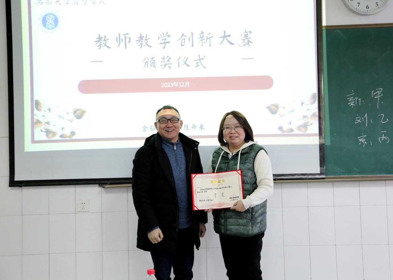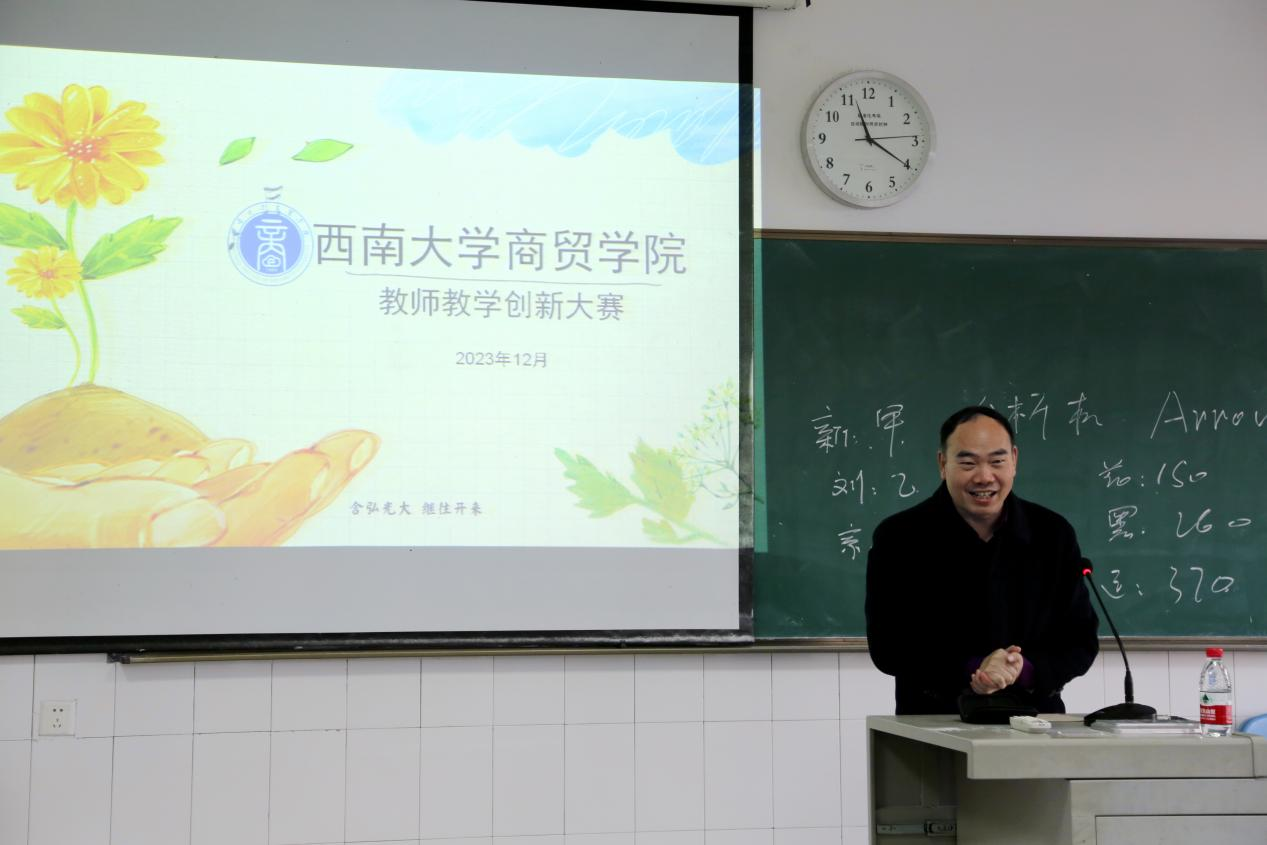 为全面落实立德树人根本任务,大力弘扬教育家精神,促进学院课程思政建设和“四新”建设,推动信息技术与教育教学融合创新发展,提升教师教育教学创新能力,提高人才培养质量,商贸学院于12月15日上午隆重举办2023年教师教学创新大赛。学院院长张应良等担任比赛评委,全体无课教师现场进行观摩学习。比赛由副院长胡继宽主持。