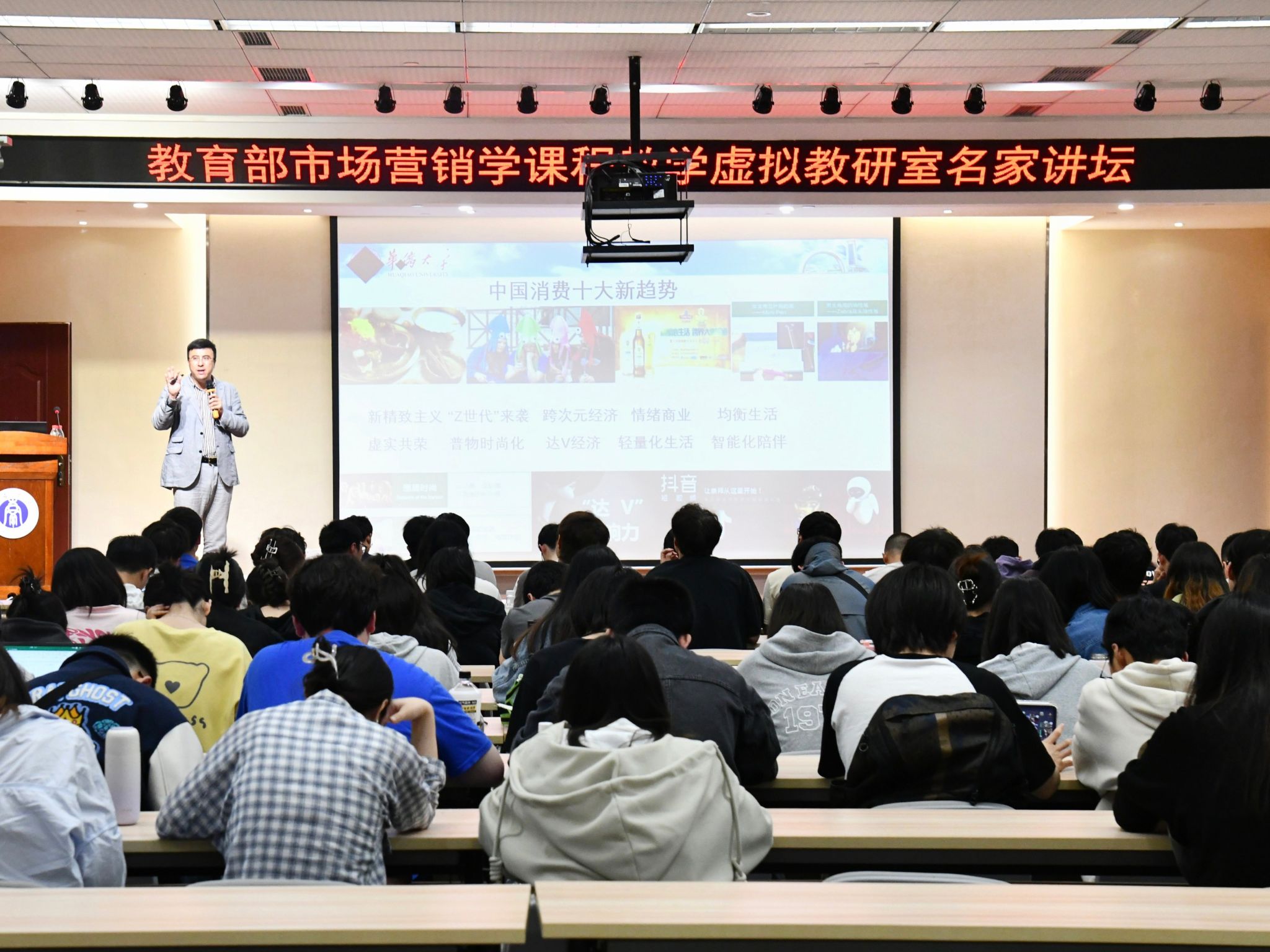 为顺应时代发展要求,创新人才培养路径,世俱杯sjb官网于4月23日晚上在7B101举行“现代企业数字营销创新网络时代的超越竞争”名家讲坛。讲坛由学院副院长韩毅主持,教育部市场营销学课程虚拟教研室主任、华侨大学二级教授杨洪涛主讲,市场营销系主任沈忠明和2021级相关专业学生参会。