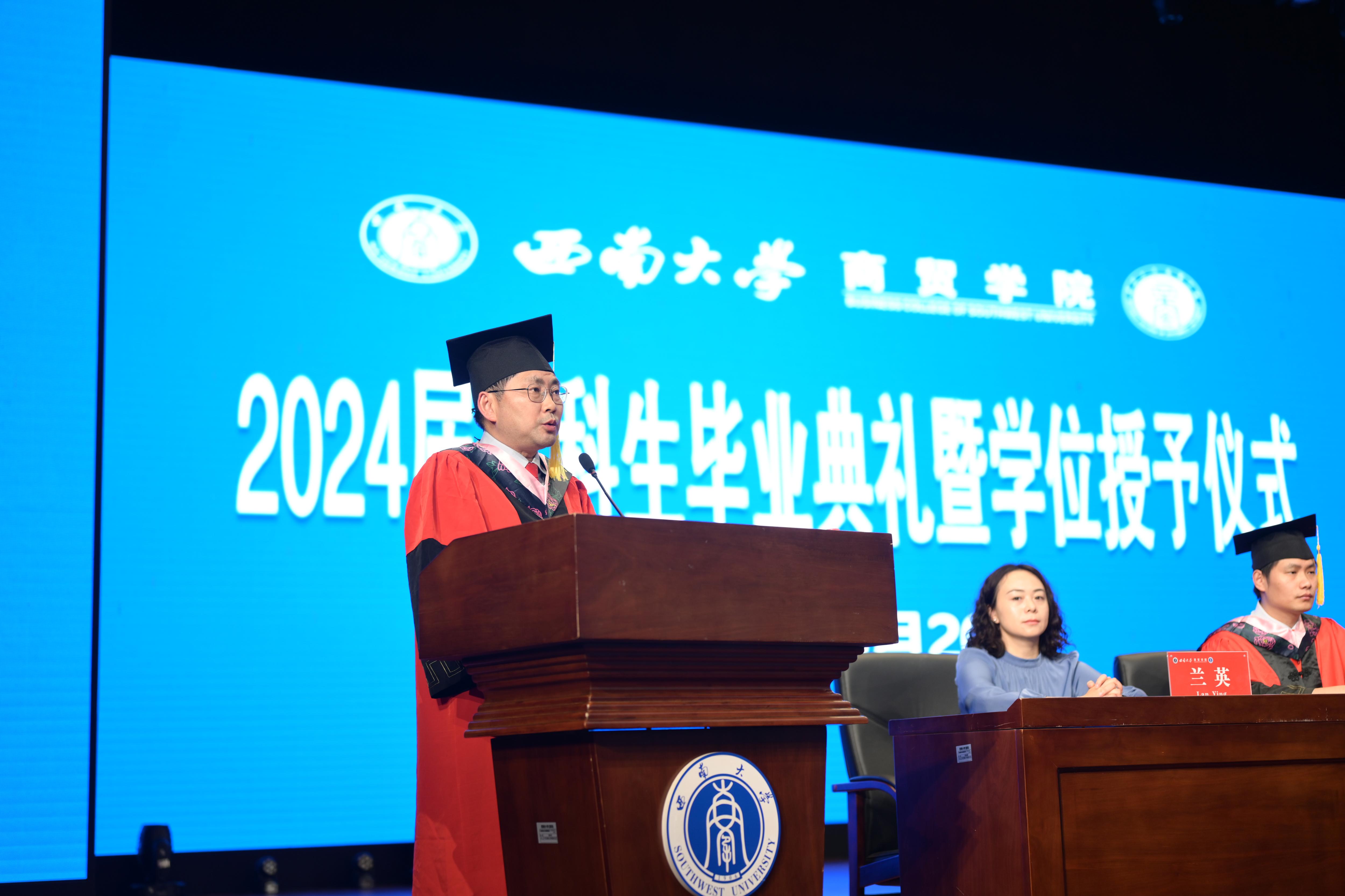 锦瑟年华,日月不居;弦歌不绝,高飞远举。6月20日上午,世俱杯sjb官网在荣昌校区新学生活动中心隆重举行2024届本科生毕业典礼暨学位授予仪式。学校党委常委、副校长葛信勇,学院党政领导,系主任等出席。学院教职工、2024届在校本科毕业生及其辅导员和班主任参加。典礼由学院党委副书记、纪委书记兰英主持。