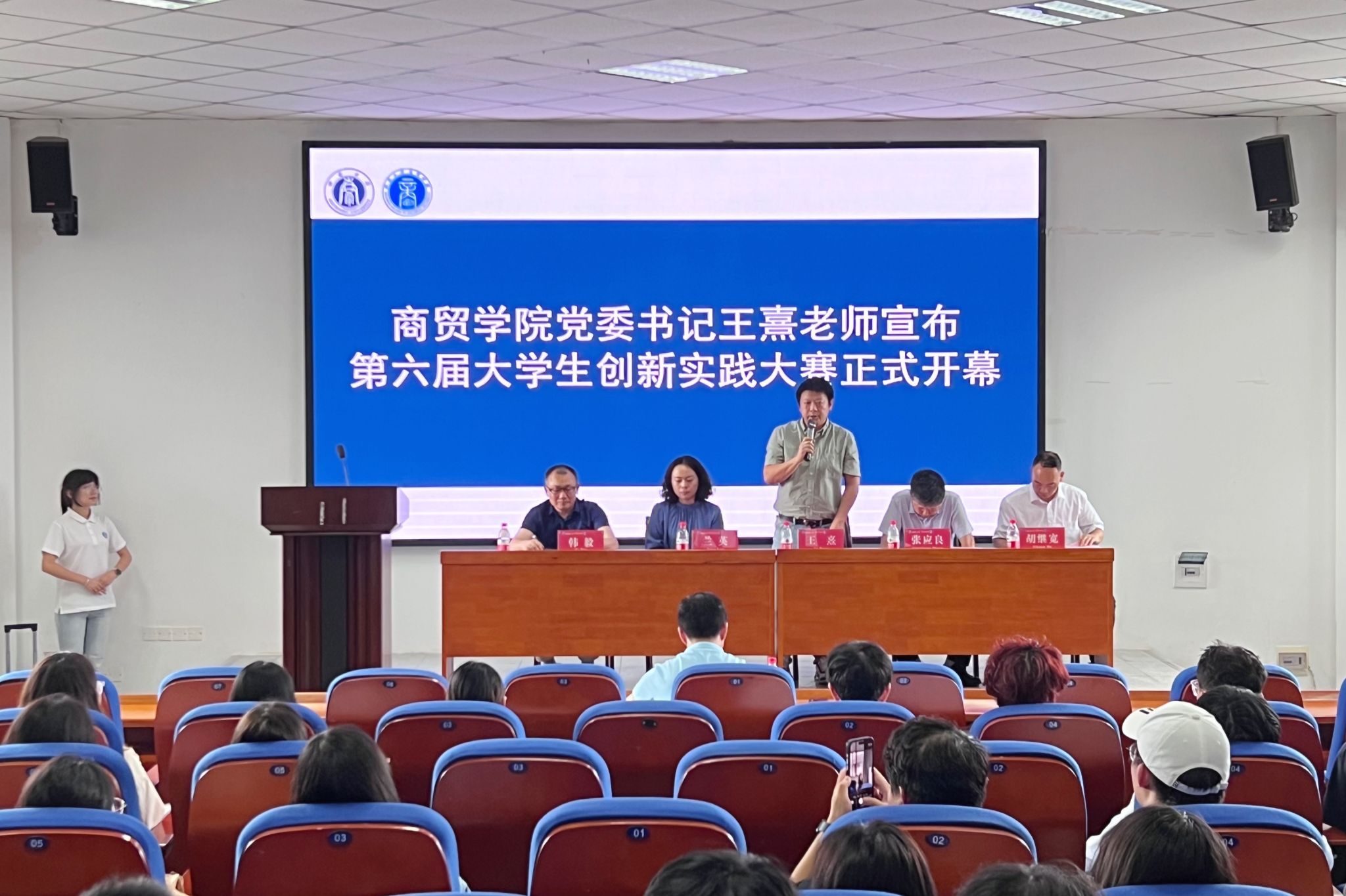 学院院长张应良在致辞中指出,造就一代具有创新、创业意识,符合未来要求的高素质人才,已经成为实现中华民族伟大复兴的时代要求。学院高度重视大学生创新创业工作,积极搭建创新创业平台,商贸学子更是在近年各类创新创业竞赛中,成果丰硕。对即将启动的第六届大学生创新实践大赛,张院长提出了三点要求:一是高度重视创新创业竞赛,加大对优秀项目的培育和扶持力度;二是提升学生参与度,以赛代练,以赛促训,突出技能,展示风采;三是建立创新创业赛事的长效机制,促进学生成功成长成才,在大众创业、万众创新中实现人生价值。随后,学院党委书记王熹公布了第五届大学生创新实践大赛的获奖情况。胡继宽副院长宣读了第六届创新实践大赛的要求、大赛时间以及相关比赛项目等,并殷切希望参赛学子高度重视本次比赛,在实践中丰富个人经历、提高自身竞争力。