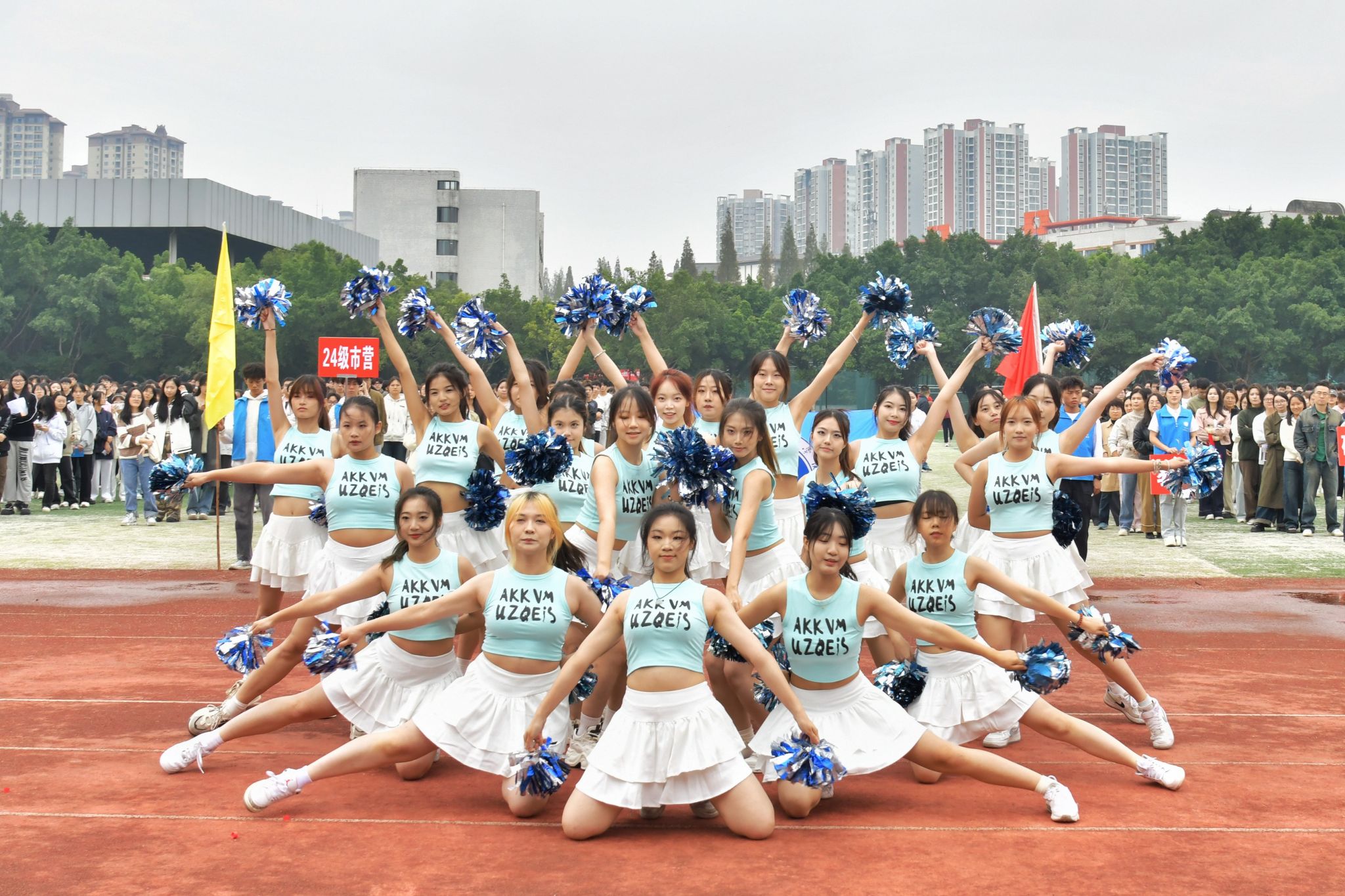 青春靓丽的拉拉队以充满活力的舞蹈拉开了开幕式的序幕。随后,全体师生肃立,奏唱《中华人民共和国国歌》。