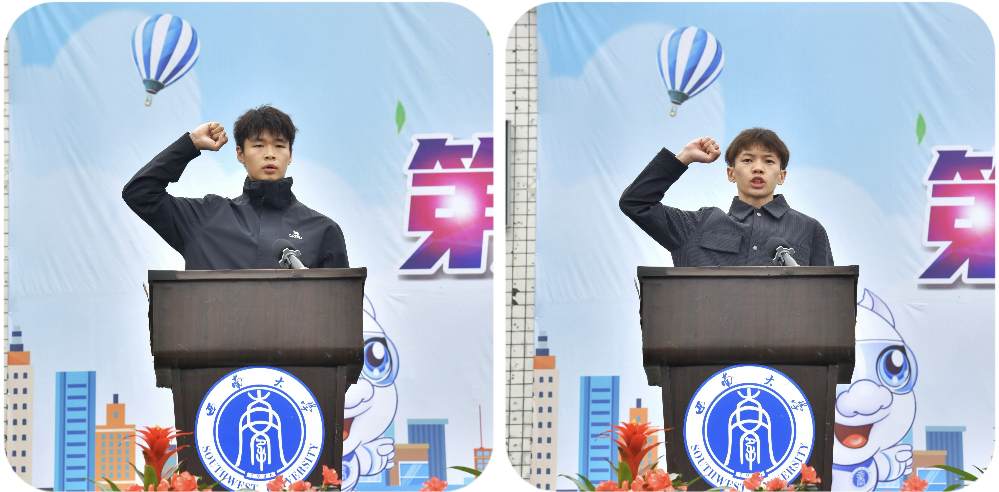 伴随着红旗飘扬、彩旗猎猎以及礼炮的轰鸣声,比拼正式开始。赛场上,运动员们身姿矫健、脚步不停、拼搏不懈;赛道旁,同学们加油声、欢呼声热情如潮、交织一片、此起彼伏。摆臂、跳跃、接棒,一举一动之间,运动员们尽情挥洒青春的活力,尽显青春的风采。