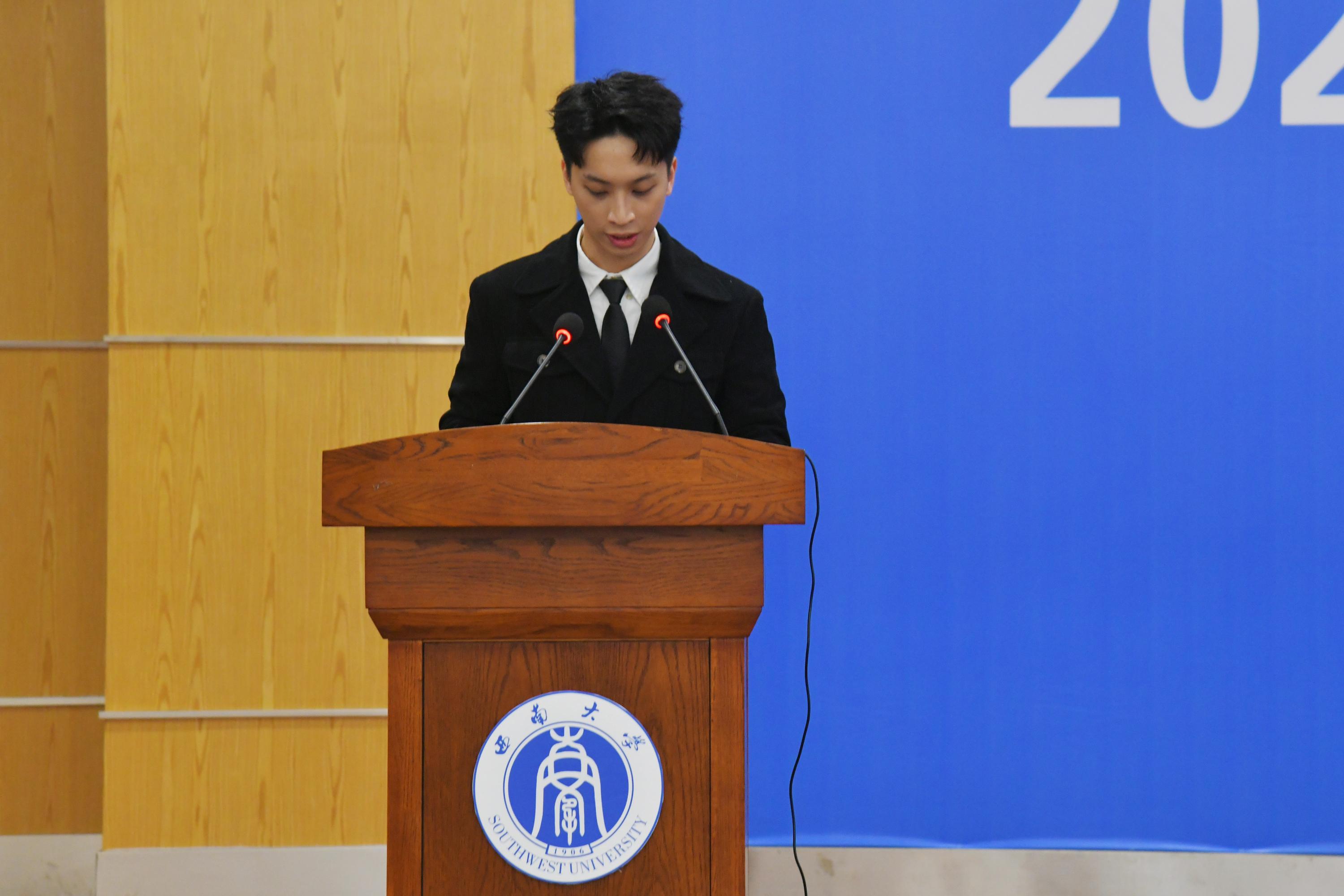 2025届本科毕业生代表黄义斐呼吁同学们立足实际、理性择业,勇于创新、敢于挑战,知行合一、注重实践,坚定地迈出职场的第一步。并承诺将怀揣赤子之心,勇担时代重任,努力将个人理想融入国家发展大局,为实现中华民族伟大复兴的中国梦贡献青春力量。