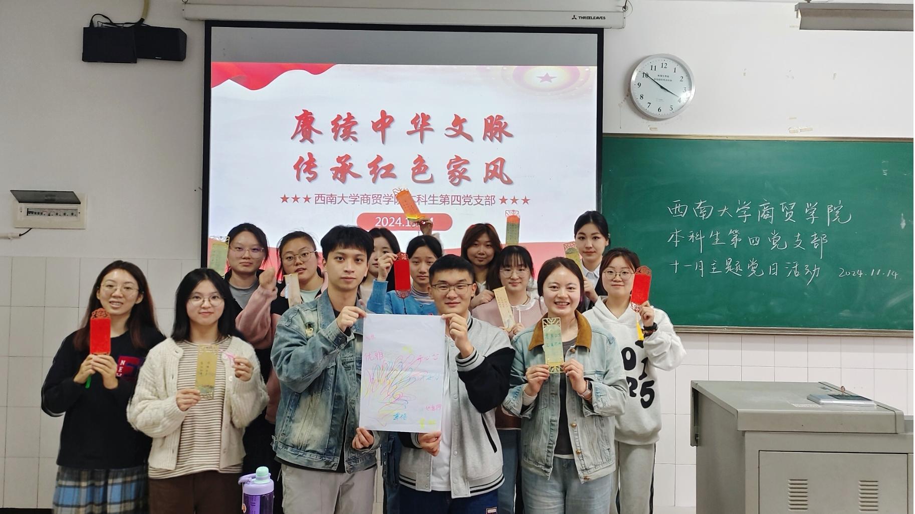 为深入贯彻习近平总书记关于家庭家教家风建设的重要论述精神,弘扬中华民族传统美德,世俱杯sjb官网本科生第四党支部于11月14日开展了“赓续中华文脉 传承红色家风”主题党日活动,以引导广大党员从优良家风中汲取精神养分,增强党性修养。