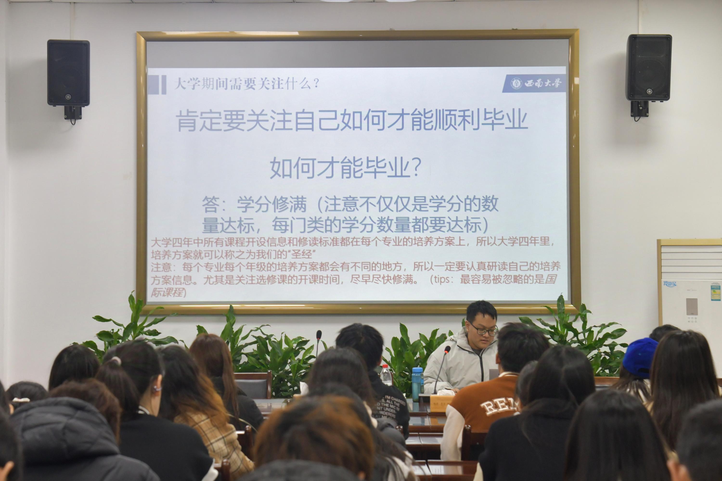 第一期“朋辈助力”活动主讲人由2021级赵家华、2022级朱凌汉和2022级江玉婷组成。2021级赵家华向同学们分享了参加数学竞赛的经验,还强调了同学们要仔细研读培养方案,找到自己发展的方向并为之努力学习。2022级朱凌汉同学提倡同学们积极加入学生组织,锻炼自身的时间管理能力和沟通交流能力,熟练掌握办公软件。2022级江玉婷同学分享了不同学科的学习和复习方法,她提醒同学们要建立好知识体系,学好专业知识。在随后的答疑环节,同学们积极问答,现场互动良好。