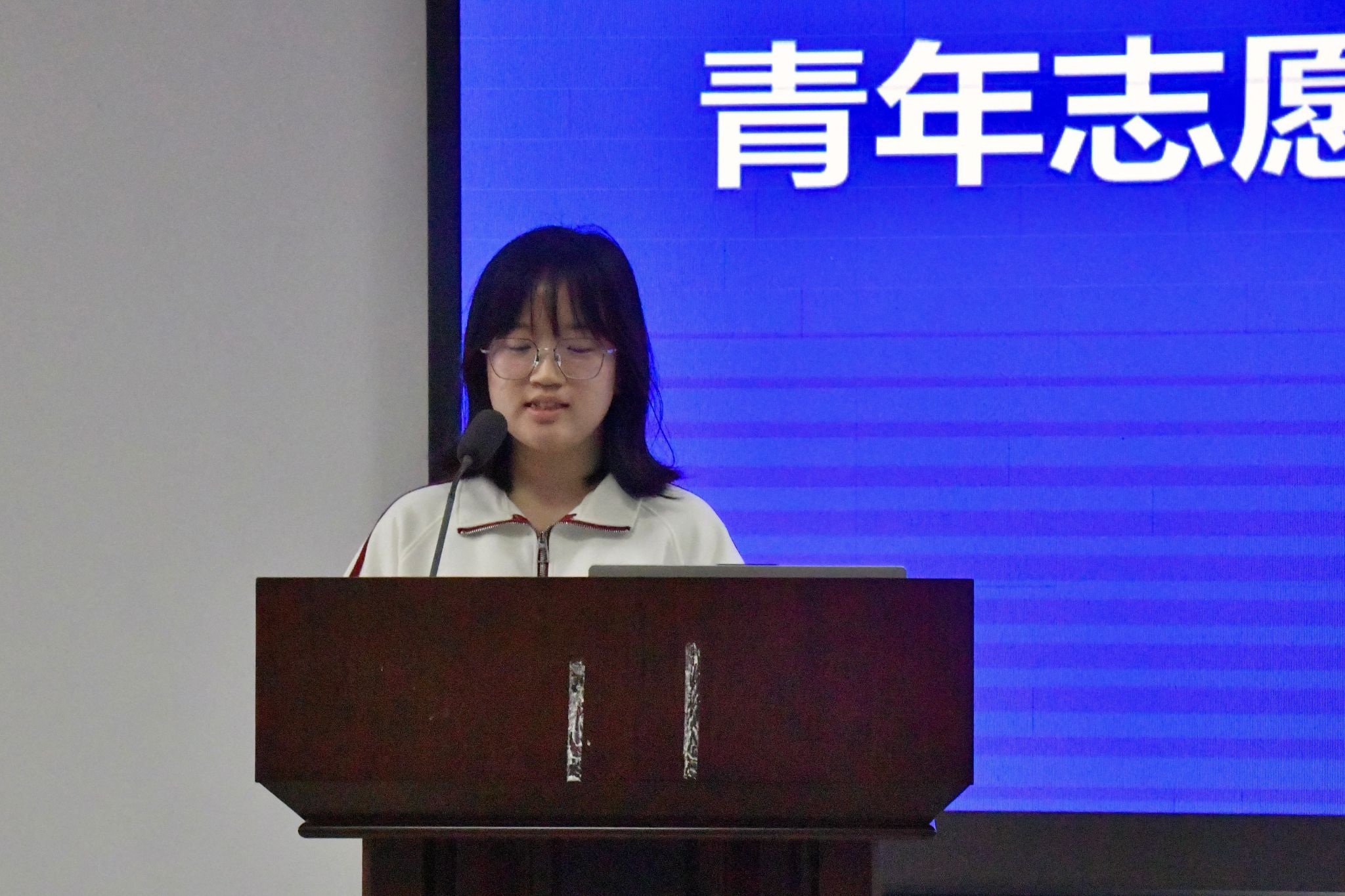 随后,青年志愿者代表宋星茜上台发言。她分享了个人志愿服务经历,呼吁更多同学加入到志愿者的行列中来,为社会发展贡献青春力量。