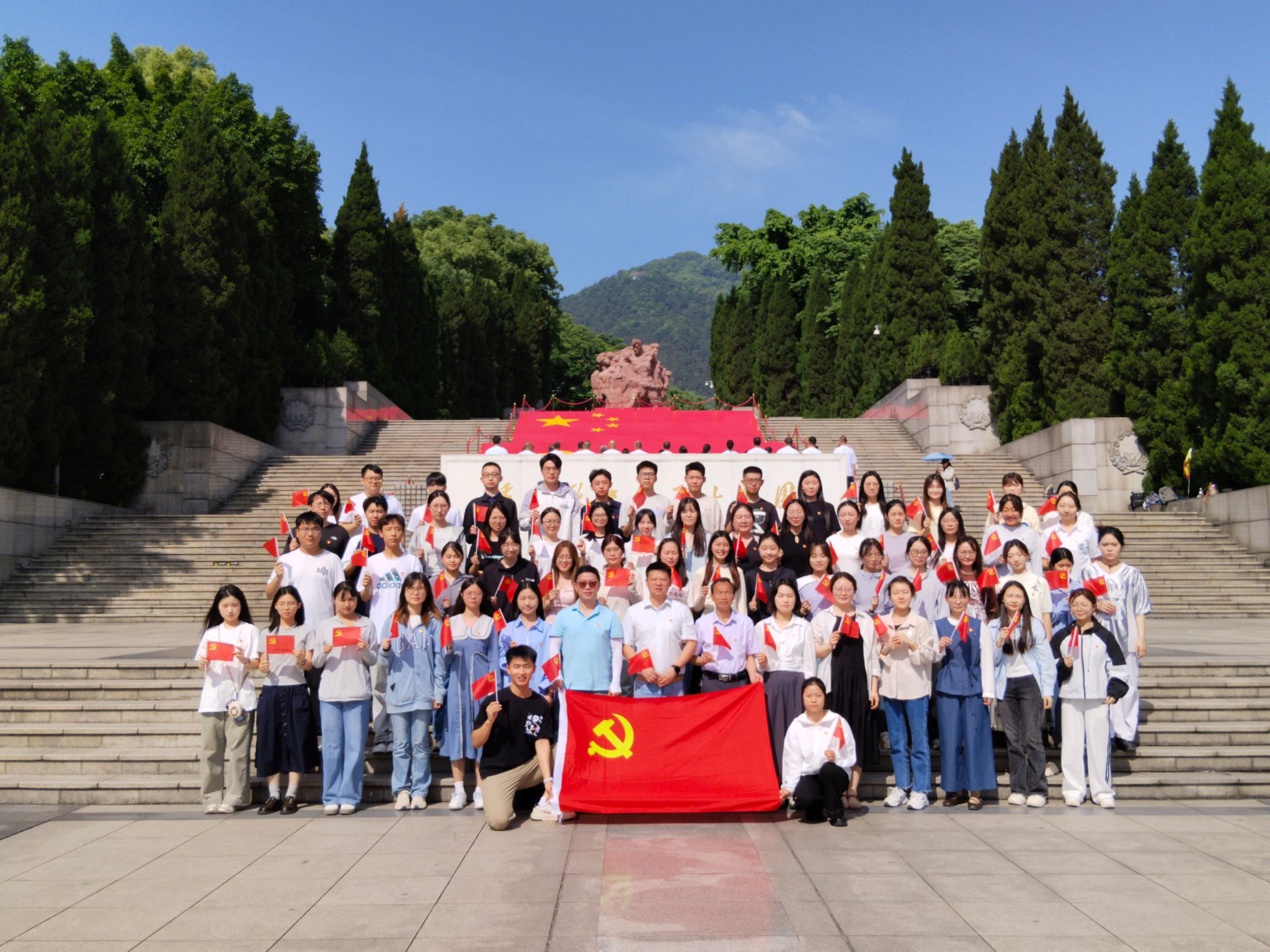 在庄严肃穆的歌乐山烈士陵园,全体党员肃立默哀,向红岩烈士致以崇高敬意。教师党员代表敬献花圈,学院党委书记王熹整理挽联,每一个动作都饱含着对先烈的敬重与缅怀。在党员代表带领下,全体党员面向党旗重温入党誓词,“我志愿加入中国共产党……”铿锵誓言激荡着每一位党员的内心。通过敬献鲜花、瞻仰烈士墓等仪式,同志们接受了一次深刻的党性教育,在缅怀先烈中进一步坚定了理想信念,强化了使命担当。
