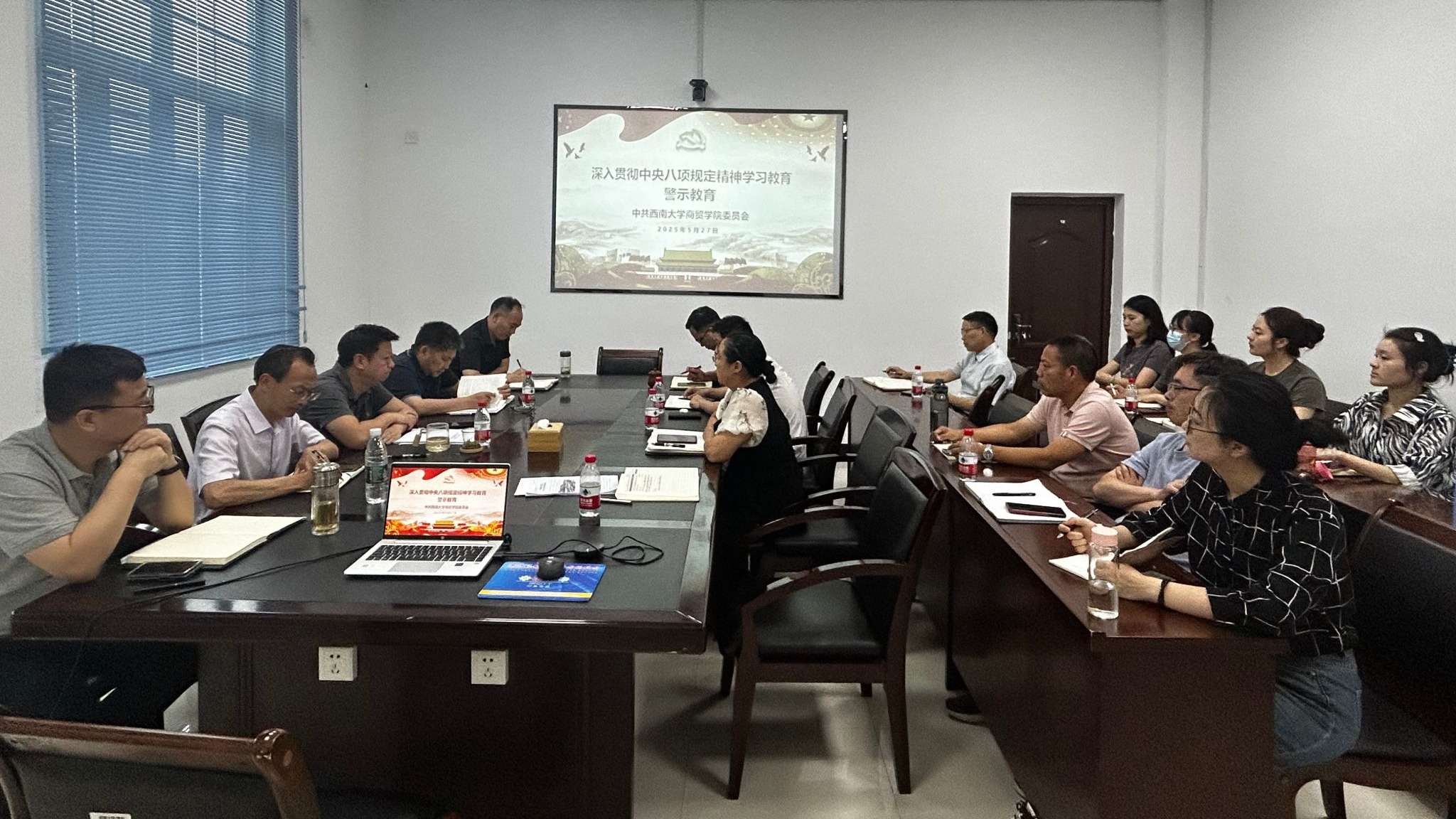 会上,党委书记王熹带领与会人员学习《违反中央八项规定及其实施细则精神典型案例》。院长张应良带领与会人员学习《教育领域违反中央八项规定精神典型案例选编》。典型案例揭露了少数党员干部在作风建设、纪律意识、权力观等方面存在的深层次问题,说明了腐败行为对个人、家庭及社会的严重危害,同时也彰显了党中央持之以恒正风肃纪、推进全面从严治党的坚定决心。
