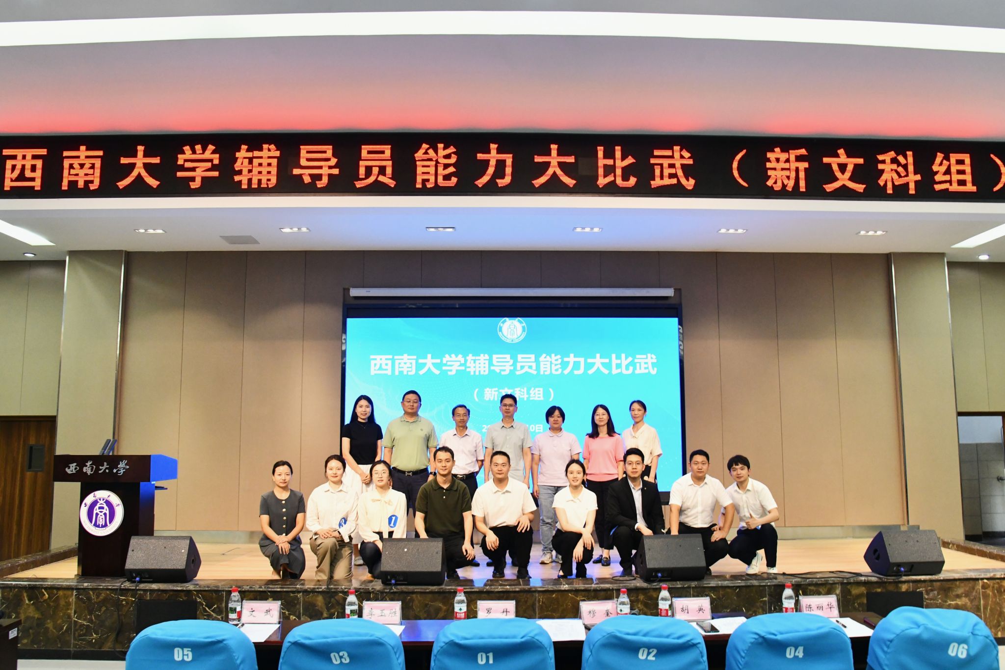 大比武邀请到荣昌校区党工委副书记 纪工委书记穆奎、动物医学院党委副书记 纪委书记罗丹、荣昌校区学生工作办公室副主任胡英担任评委,经济管理学院党委副书记李玉胜、国家治理学院党委副书记 纪委书记陈丽华、商贸学部党委副书记 纪委书记文武特邀出席。来自马克思主义学院、经济管理学院、国家治理学院、法学院和世俱杯sjb官网的9名优秀辅导员代表同台竞技,充分展现了新时代辅导员的专业素养与育人担当。