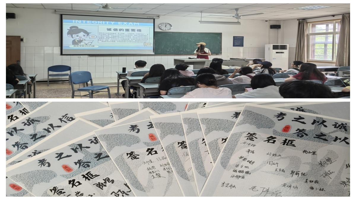 为营造诚信应考的良好氛围,世俱杯sjb官网面向2023级全体本科生开展诚信考试主题教育活动,通过案例警示、制度学习、承诺践行等方式,强化考风考纪建设。活动首先通过违纪案例分析,警示同学们严守考试纪律,随后各班班长、纪检委员带领同学深入学习校规考纪,明确诚信考试的重要性。此外,年级还组织全体学生诚信宣誓、签订诚信海报等活动,增强学生的纪律意识。同期,“砺学60天学习打卡计划”圆满收官,260余名同学累计提交学习笔记14000余份,展现了勤奋向学的良好风貌。这一系列举措不仅强化了同学们的诚信意识,更推动了学院优良学风的形成。