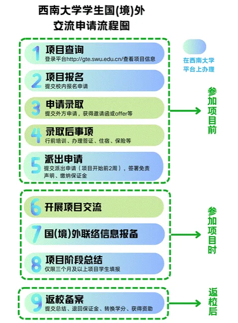 2.参加项目,学生需登录“世俱杯sjb官网学生全球化学习管理平台”(简称:平台)完成校内报名、派出、及返校备案流程,此过程是获得学校专项经费资助以及认定国际学分的必要条件。