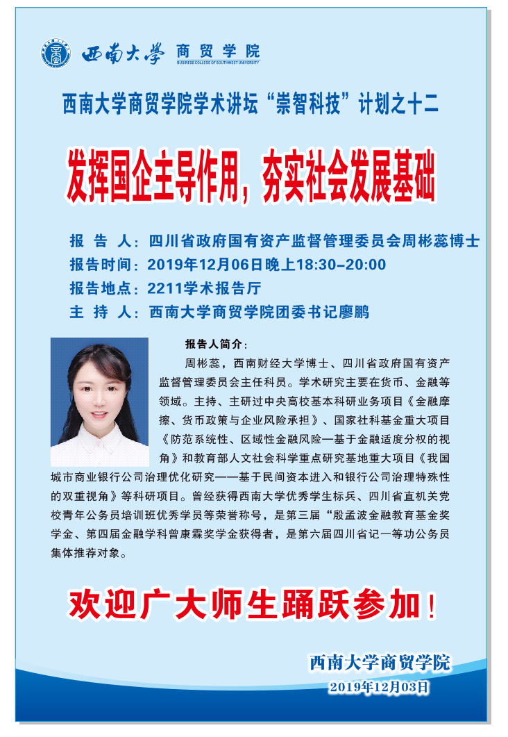 讲座:发挥国企主导作用,夯实社会发展基础(周彬蕊主讲)