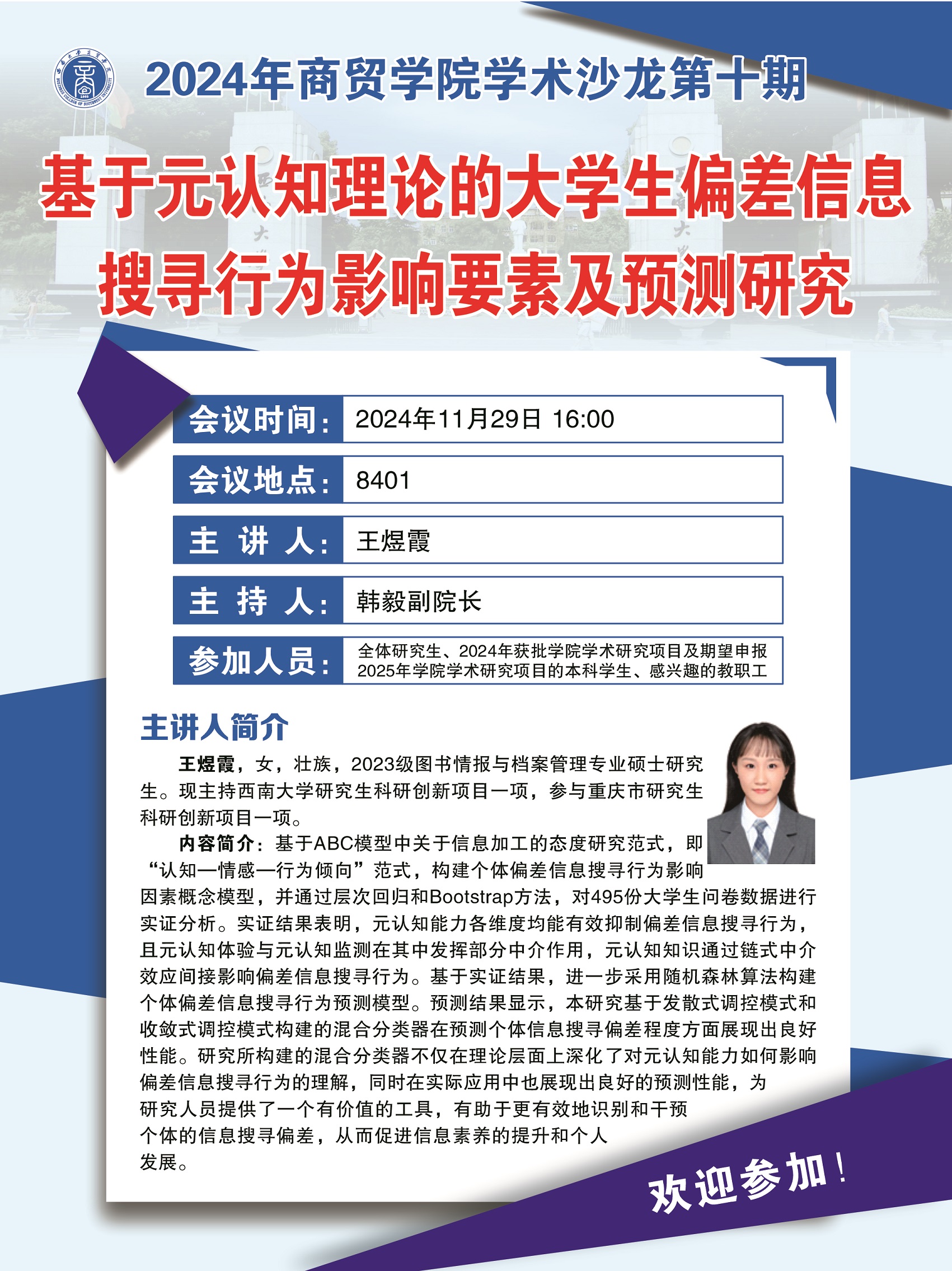 学术沙龙:基于元认知理论的大学生偏差信息搜寻行为影响要素及预测研究