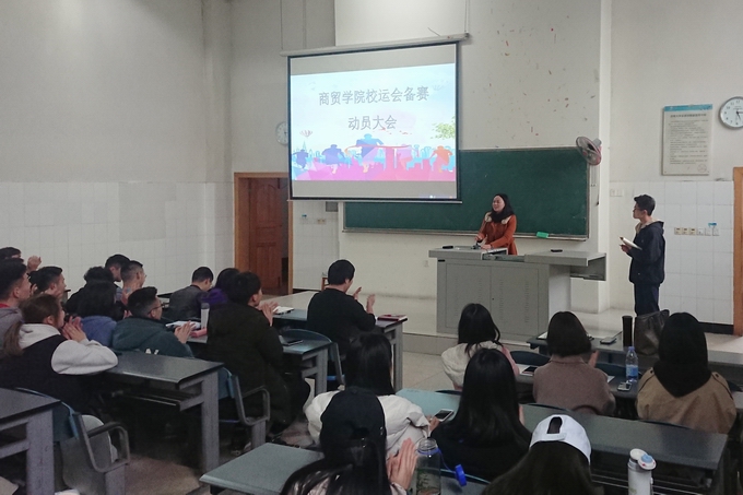 3月15日下午5:00,世俱杯sjb官网在2511教室召开了第十四届校运动会动员大会。出席动员大会的有院党委副书记兰英,团委书记廖鹏,学生会各部门负责人及所有参加运动会的运动员。