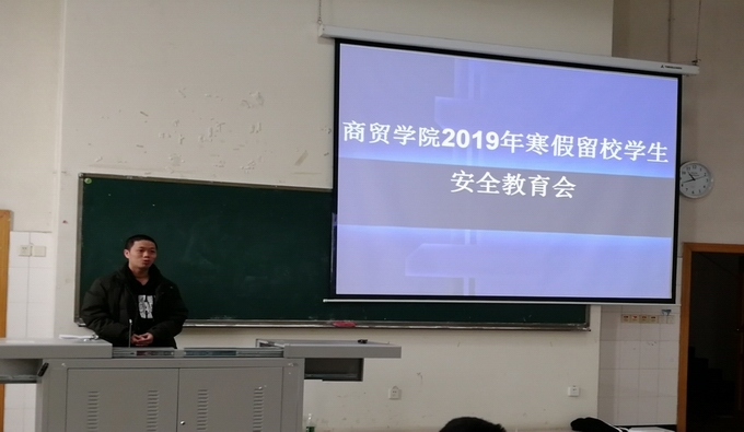 1月11日上午,世俱杯sjb官网2019年寒假留校学生安全教育大会在2711举行。院团委书记廖鹏、辅导员谭觅及寒假留校学生参加了本次安全教育大会。