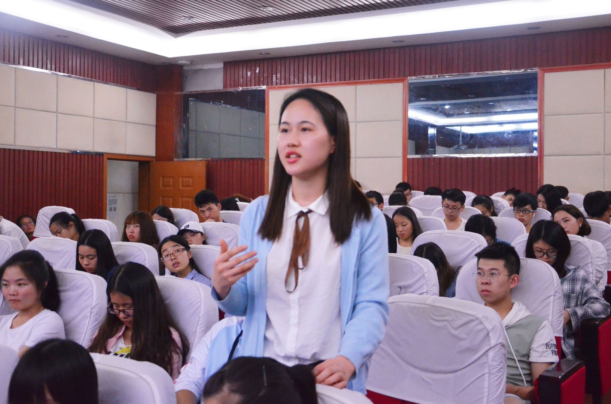 在提问互动环节,现场学生提出,创业中想法与现实差距过大,应当如何处理。梅伯平副教授认为同学们应向行业经验者请教,实践于市场,努力实现最终效益。他鼓励同学们接受时代挑战,敢于创新、勇于创业;鼓励大家组建团队与企业合作,锻炼社会实践能力,不断实现个人理想、追逐青春梦想。